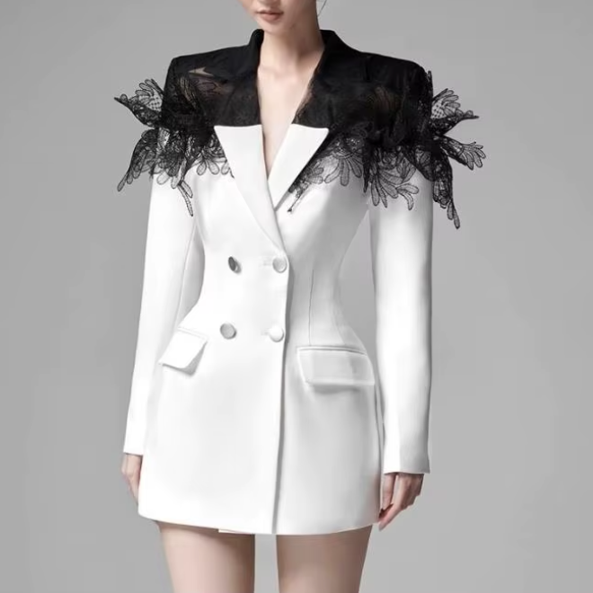 2 Pcs Women Spring Lace Decoration Blazer Dresses