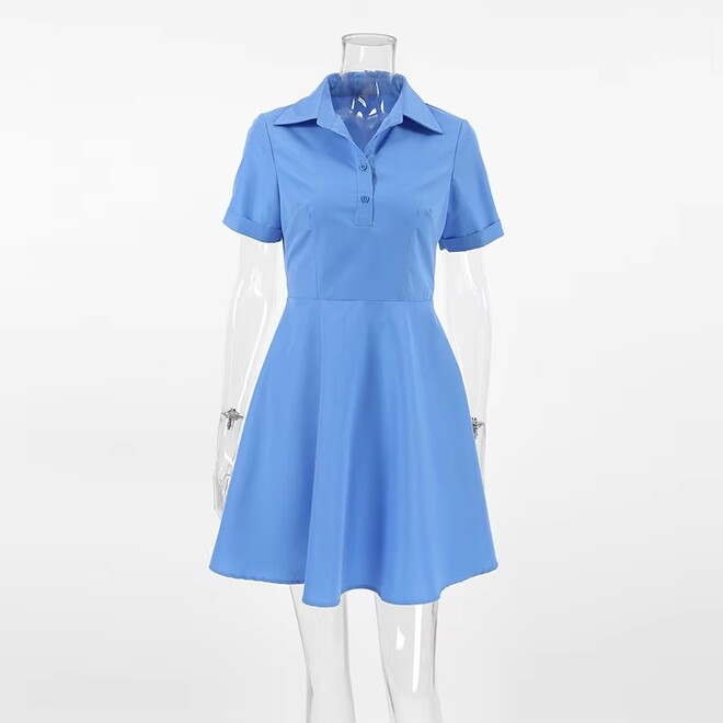 4 Pcs Womens Short Sleeve Spring Fashionable Blue Lapel Shirt Dresses